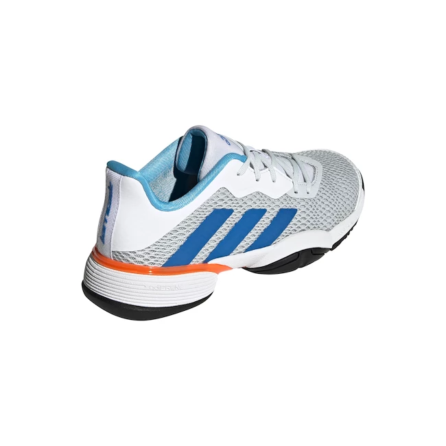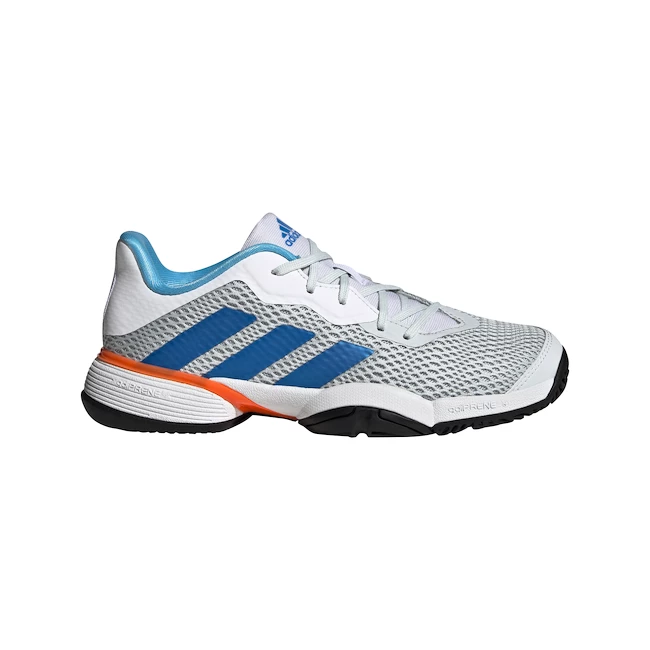 Les chaussures de tennis adidas Barricade K pour juniors en combinaison de couleurs bleu et blanc sur toutes les surfaces, destinées aux juniors prometteurs qui souhaitent participer à des tournois, offrent stabilité, confort et un très bon amortissement AdiPrene+ à l’avant. La chaussure est inspirée de la gamme haut de gamme Barricade pour adultes. Ils sont dotés d’un laçage asymétrique pour mieux ancrer le pied dans la chaussure.