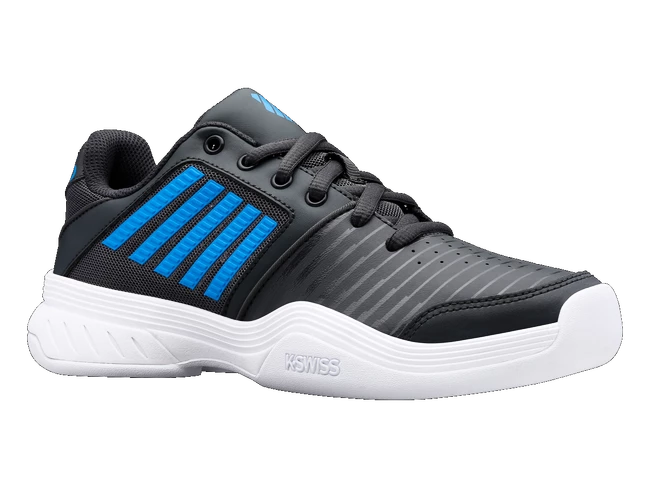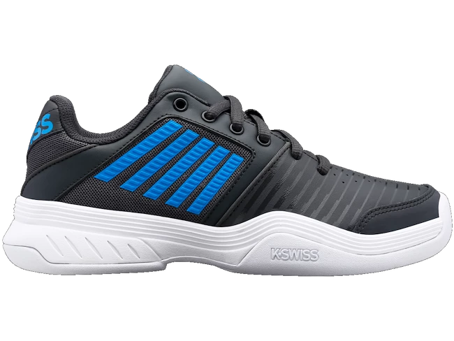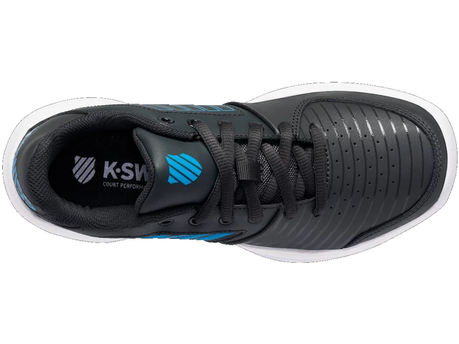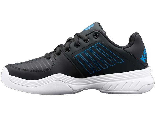 Les chaussures de tennis K-Swiss Court Express Carpet Dark Shadow/White/Swedish Blue pour bébé sont des chaussures à finition moquette pour les jeunes joueuses de tennis et les joueuses de tennis de tous niveaux. La respirabilité est garantie par une tige en mesh. La durabilité et la stabilité seront appréciées grâce à la qualité de fabrication du cuir artificiel. Les chaussures sont légères et confortables et les enfants peuvent s’amuser beaucoup, même en dehors du court.