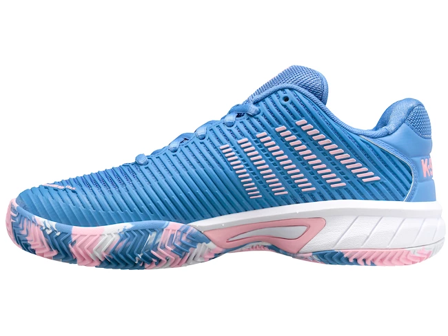 La chaussure de tennis K-Swiss Hypercourt Express 2 HB pour bébé en bleu-argent est la chaussure de performance ultime sur terre battue pour les jeunes joueurs de tennis ambitieux. Basée sur le modèle haut de gamme pour adultes, elle offre un excellent amortissement K-EVA, une protection flexible pour la tige DuraWrap Flex et une semelle en argile haut de gamme en caoutchouc AÖSTA 7.0 durable. Pour les jeunes joueurs conviviaux qui ont envie de gagner.