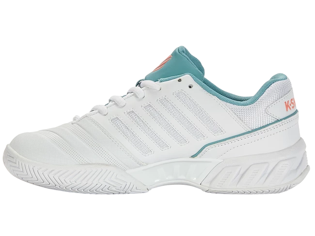 Les baskets Bigshot Light 4 sont fabriquées de manière traditionnelle à partir de cuir synthétique, de maille et ont une doublure spéciale DRI-LEX à l’intérieur pour une évacuation efficace de la transpiration. Elles possèdent un châssis de soutien plantaire et sont très stables grâce à leur large semelle. Le rembourrage confortable en mousse K-EVA dans la partie centrale est élevé et peut épargner les articulations de la pression qui se produit pendant le mouvement de tennis.