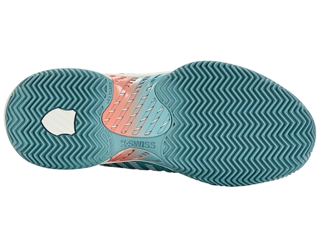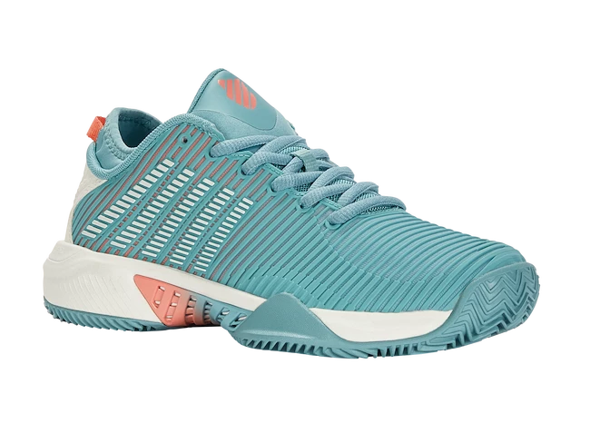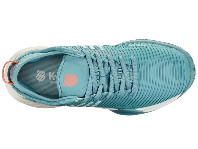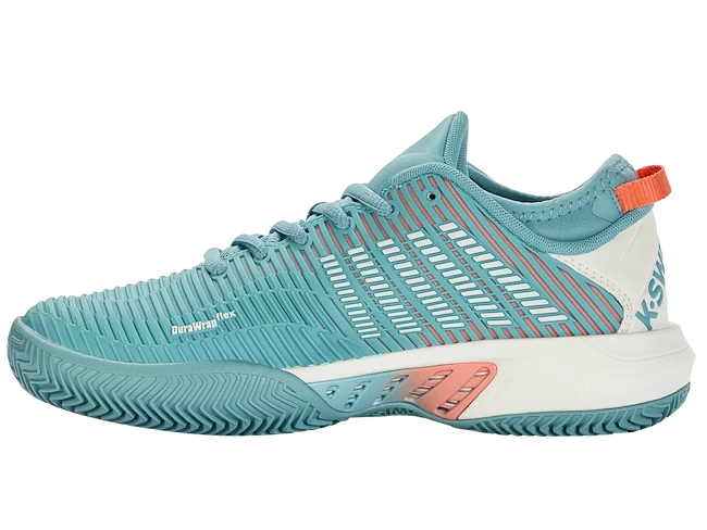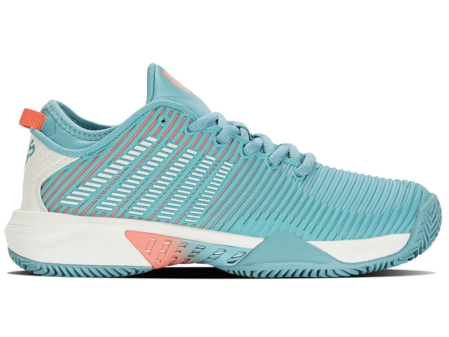 Les chaussures de tennis pour femmes K-Swiss Hypercourt Supreme HB Nile Blue sont des baskets de tournoi sur terre battue pour les joueuses expérimentées et compétitives. La nouvelle marque K-Swiss regorge de technologies telles que Surge 7.0 pour une accélération extraordinaire, une tige DuraWrap Flex durable et élastique, une semelle en caoutchouc haut de gamme AÖSTA 7.0 ou un design extérieur sans coutures Seamfree capable de résister aux mouvements les plus agressifs sur le court.