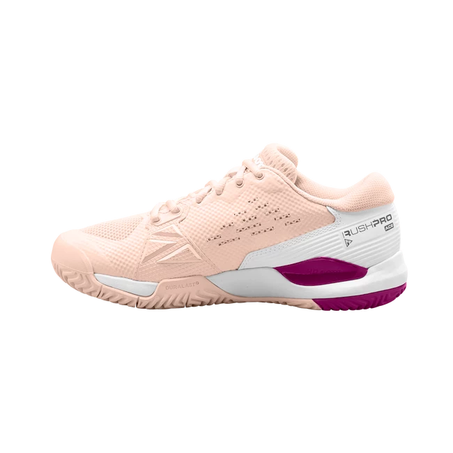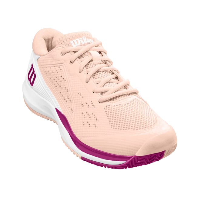 Chaussures de tennis tout-terrain Wilson Rush Pro Ace W Scallop Shell pour femmes, destinées aux joueurs de club et de course, dotées des technologies Sensifeel et R-DST+ pour un confort optimal. Les chaussures offrent un excellent rapport entre légèreté et durabilité. L’empeigne moderne est respirante et solide à la fois. Les technologies de pointe vous aideront à atteindre des performances optimales sur le terrain. La semelle durable sur toutes les surfaces en caoutchouc Duralast peut supporter des charges élevées.
