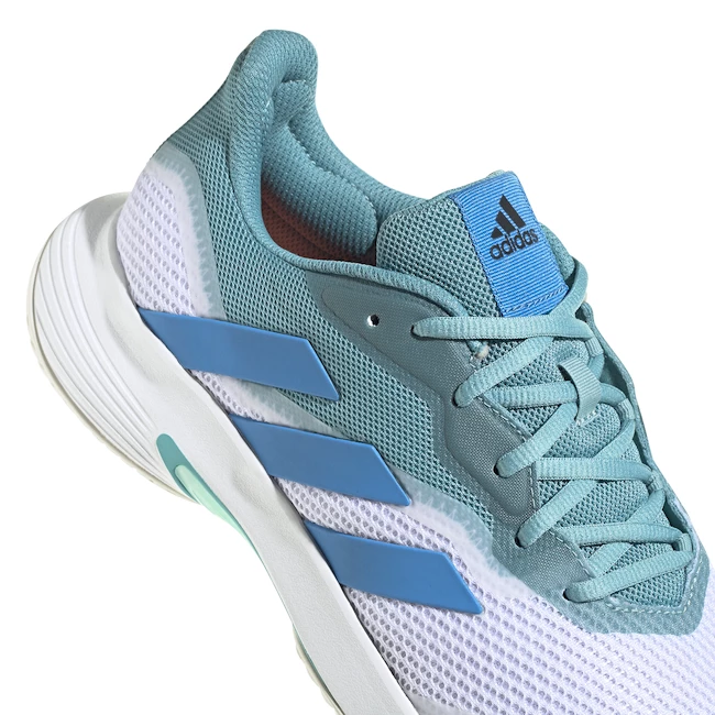 Tennis pour homme adidas CourtJam Control M Mint Ton, toutes les surfaces pour joueurs de club vous raviront par leur confort, leur stabilité et leur légèreté agréable. Ne vous contentez pas de participer. Dominez. La tige en mesh et la semelle intermédiaire souple Bounce de ces chaussures de tennis vous apporteront du confort tout en renforçant la pression sur votre adversaire.