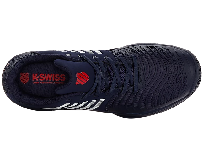 Les chaussures de tennis pour hommes K-Swiss Express Light 3 HB Peacoat sur terre battue pour les joueurs de club exigeants raviront par leur légèreté, leur durabilité, leur stabilité et leur confort exceptionnel. La troisième génération du best-seller de K-Swiss en Europe est livrée avec une tige améliorée. Il est nouvellement équipé de la protection DuraWrap Flex, qui résiste mieux aux glissements et au frottement de la chaussure sur le sol. Le stabilisateur central PSC à 180° renforce la chaussure lors des mouvements de rotation.