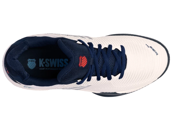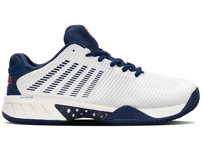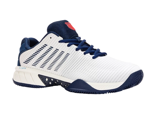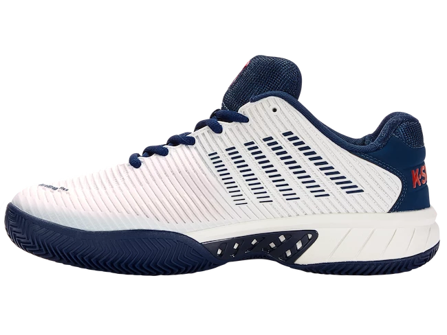 Les chaussures de tennis pour hommes K-Swiss Hypercourt Express 2 HB Blanc sont les meilleures chaussures de tennis pour la terre battue. Le modèle de deuxième génération le plus vendu de K-Swiss regorge de technologies telles que SurgeLite pour une accélération extraordinaire, une tige DuraWrap Flex durable et élastique, une semelle en caoutchouc haut de gamme AÖSTA 7.0 ou une construction extérieure sans soudure Seamfree, qui peut résister aux mouvements les plus agressifs sur le court.