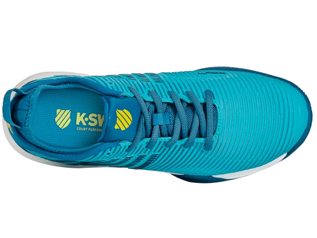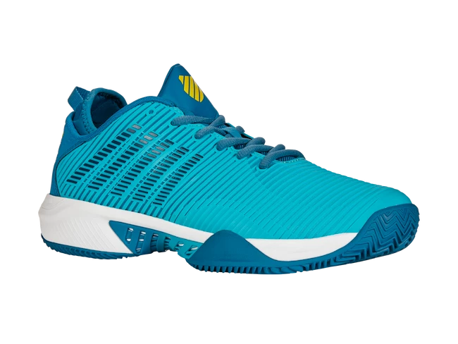 Les baskets K-Swiss Hypercourt Supreme HB Scuba Blue pour homme sont des chaussures haut de gamme pour les joueurs expĂ©rimentĂ©s et les joueurs de course jusqu’au niveau des tournois. La nouvelle marque K-Swiss est renforcĂ©e par les technologies Surge 7.0, la tige DuraWrap Flex, la semelle AĂ–STA 7.0 et la construction extĂ©rieure sans coutures Seamfree.