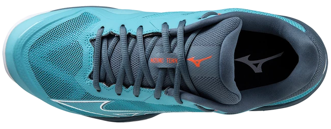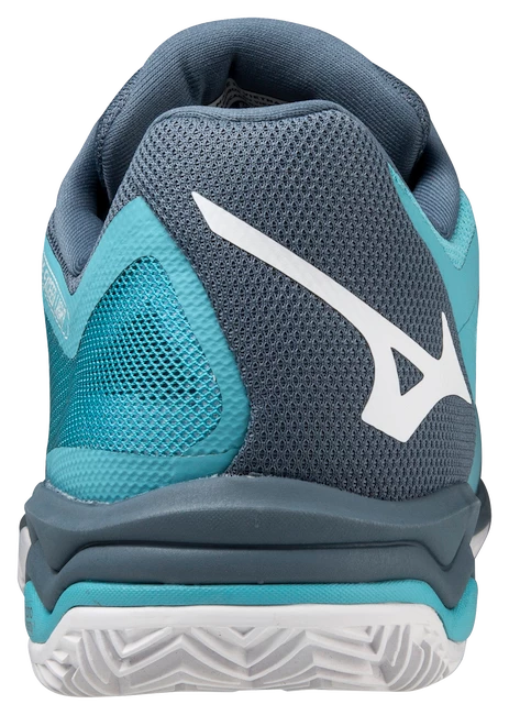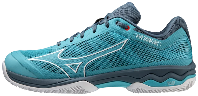 Chaussures de tennis pour hommes Mizuno Wave Exceed Light Clay Maui Blue sur terre battue pour les joueurs de club actifs avec le désir des chaussures les plus légères avec un excellent confort. Ces chaussures sont basées sur la version tournoi du Mizuno Wave Exceed Tour 5. Mais le dessus et la semelle de la chaussure sont allégés pour un maximum de confort et une sensation de légèreté lors du port.