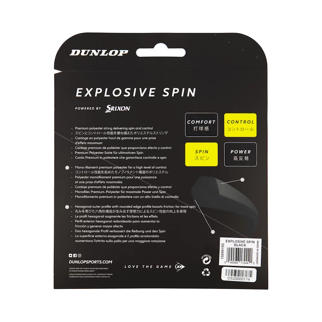 Tennis String Dunlop Explosive Spin Black 1.25 Set (12 m) est une corde co-polyester durable axée sur la rotation et le contrôle. Jouez des coups tordus de toutes les positions. Cordon en polyester super premium pour l’essorage et le contrôle à un niveau de performance élevé. Polyester monofilament super premium qui offre performance et bonne durabilité. Le profil extérieur hexagonal augmente la friction et la vrille. Il surprend par son confort, qui est au-dessus de la moyenne parmi les cordes en polyester. Conçu pour les joueurs avancés et compétitifs avec un style de tennis agressif.