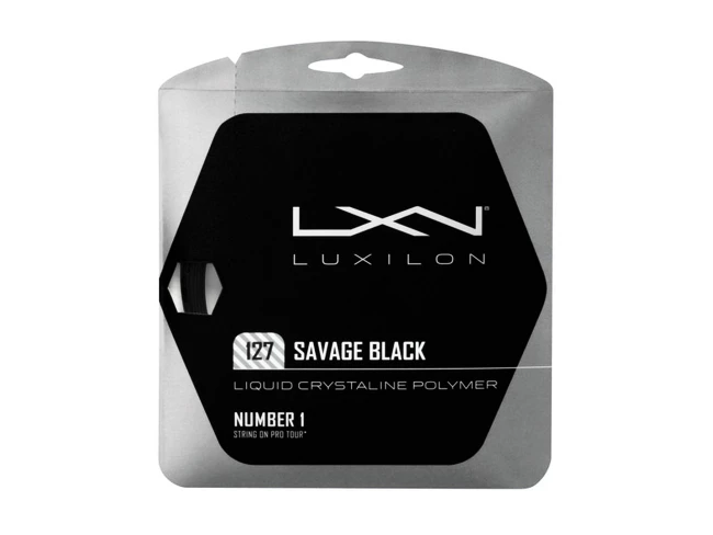 La corde de tennis Luxilon Savage 127 Black a une forme à six côtés pour une rotation extrême dans les coups durs et lourds. La corde synthétique monofilament confortable se distingue par sa durabilité et son maintien à long terme de la tension.