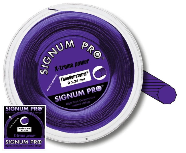 La corde de tennis Signum Pro Thunderstorm (200m) suit la populaire String Signum Pro Tornado, grâce au profil 10-played offre une plus grande durabilité tout en maintenant un excellent contrôle de la balle, une perte minimale de tension et une excellente flexibilité.
