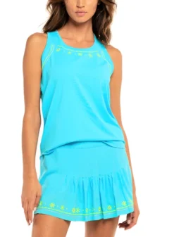 Le débardeur Lucky in Love Stitch Around Tank pour femme est d’un magnifique bleu ciel avec des broderies florales fluo et métalliques qui vous feront briller et vous épanouir sur le court. Profitez d’une liberté de mouvement et d’une respirabilité optimales avec ce haut de tennis sans manches à la coupe décontractée et amusante.