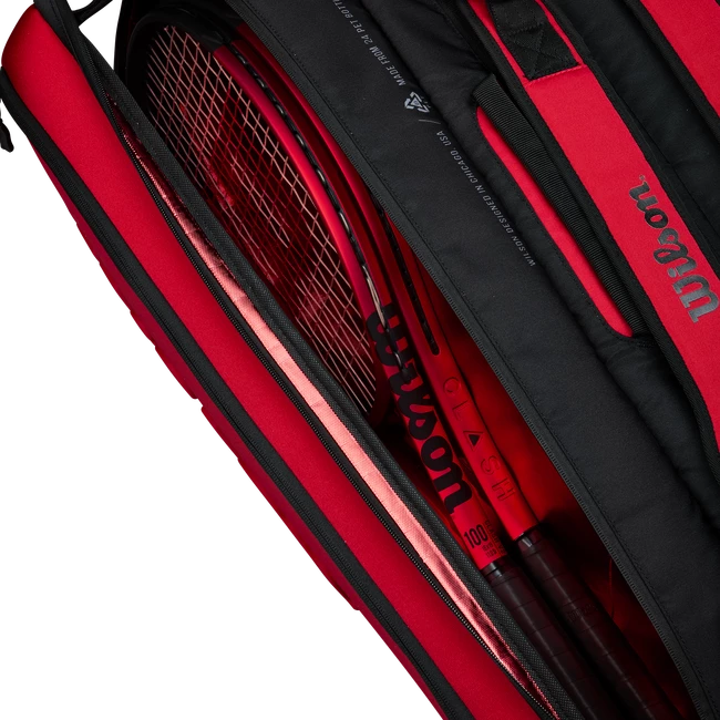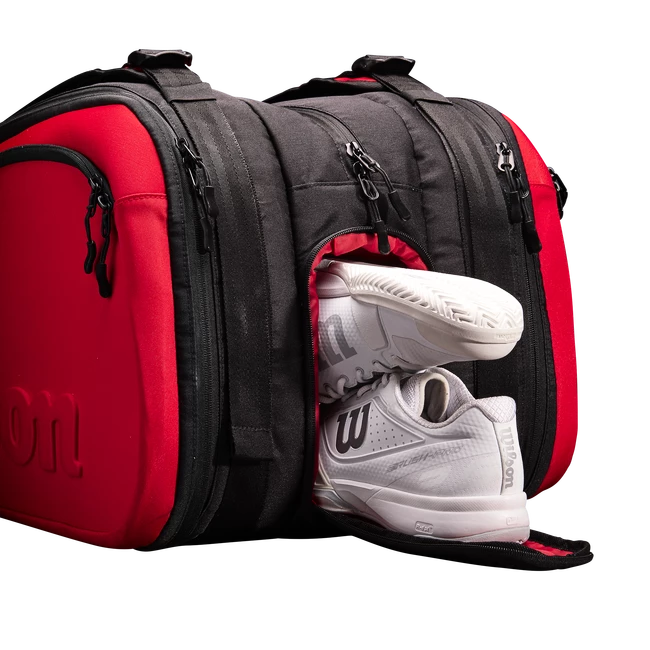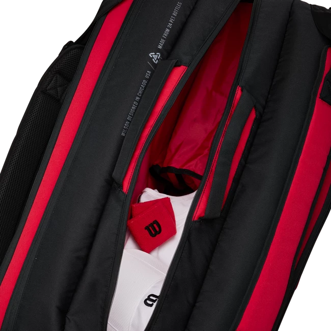 En plus des 15 raquettes de tennis, le sac à raquettes rouge Wilson Super Tour 15 Pack Clash v2.0 peut contenir d’autres équipements dont vous avez besoin pour un entraînement de tennis ou un match, comme des vêtements et des chaussures, ainsi qu’une poche spéciale pour les petits objets et un compartiment interne pour ordinateur portable ou tablettes. Grâce aux bretelles variables, vous pouvez porter le sac sur votre dos comme un sac à dos. En plus de protéger votre équipement grâce au matériau solide, le sac à dos est également équipé d’une protection thermique, ainsi votre équipement sera protégé des températures élevées.