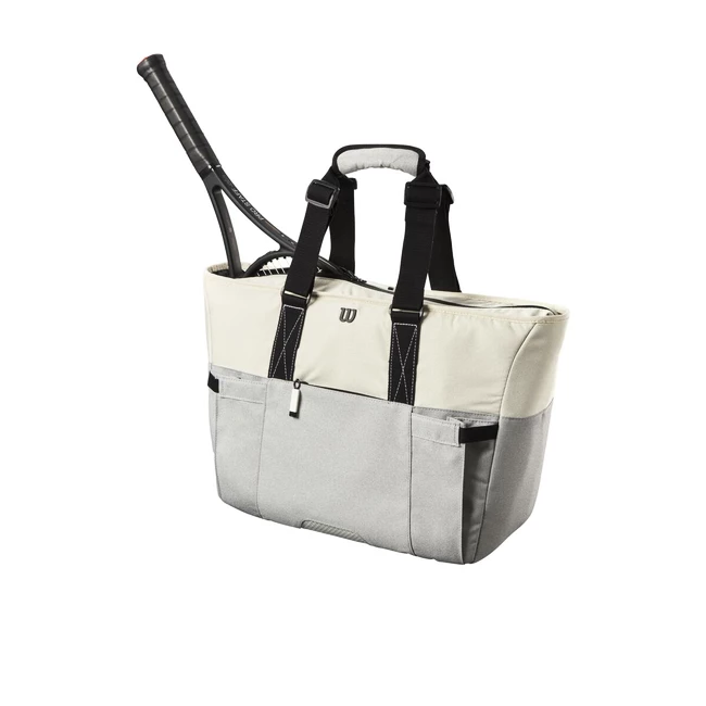 Le sac fourre-tout Wilson gris/bleu pour femme est idéal pour les joueuses qui ont besoin d’un maximum de 2 raquettes pour s’entraîner ou jouer. Dans cet élégant sac, vous pouvez également placer une bouteille d’eau à laquelle la poche extérieure est destinée. D’autres objets nécessaires peuvent être rangés dans plusieurs autres poches. Vous pouvez porter le sac à la main ou à l’épaule.
