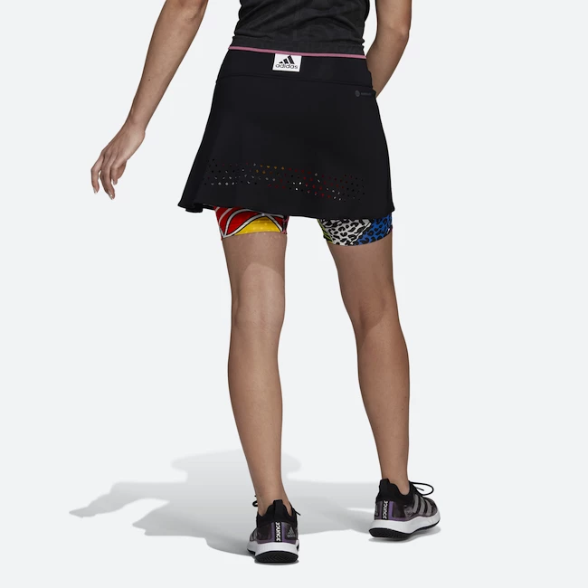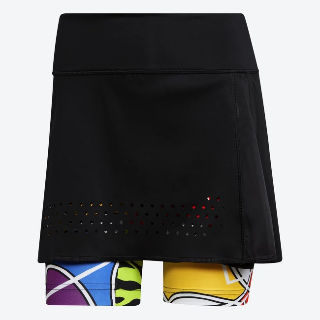 Les Jupe sont fabriquées à partir de matériaux recyclés, la partie inférieure est percée de trous découpés au laser pour une plus grande liberté de mouvement. Le short élastique intérieur avec un imprimé distinctif prolonge la longueur du pantalon. Le confort garantit une taille large et élastique.