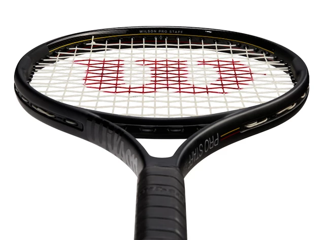 Pour la treizième version de la raquette Pro Staff, les designers ont décidé de rendre hommage aux anciens modèles de l’ère Pete Sampras. La partie supérieure de la tête de raquette montre le matériau graphite exposé dans toute sa splendeur. Dans le même temps, des lignes rouges et jaunes traversent cet endroit, faisant référence à la conception des raquettes Pro Staff originales. Des lignes apparaissent également sur le col de la raquette. Le reste du cadre est noir dans une finition caoutchoutée mate avec un lettrage Wilson brillant sur le col de la raquette.