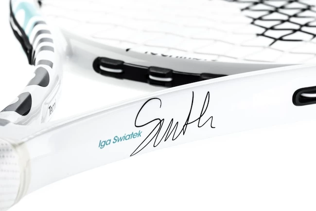 La raquette de tennis Iga Tempo 298 a Ă©tĂ© rĂ©alisĂ©e sur mesure : toutes les caractĂ©ristiques techniques (poids 298 g, taille de la tĂŞte 630 cm2, balancier 320 mm, adhĂ©rence…) ont Ă©tĂ© optimisĂ©es sur le court pour atteindre la vitesse de swing idĂ©ale dans toutes les situations. Iga voulait Ă©galement personnaliser le design de la raquette avec une finition brillante grâce Ă son souci du dĂ©tail et a signĂ© le cadre pour approbation.