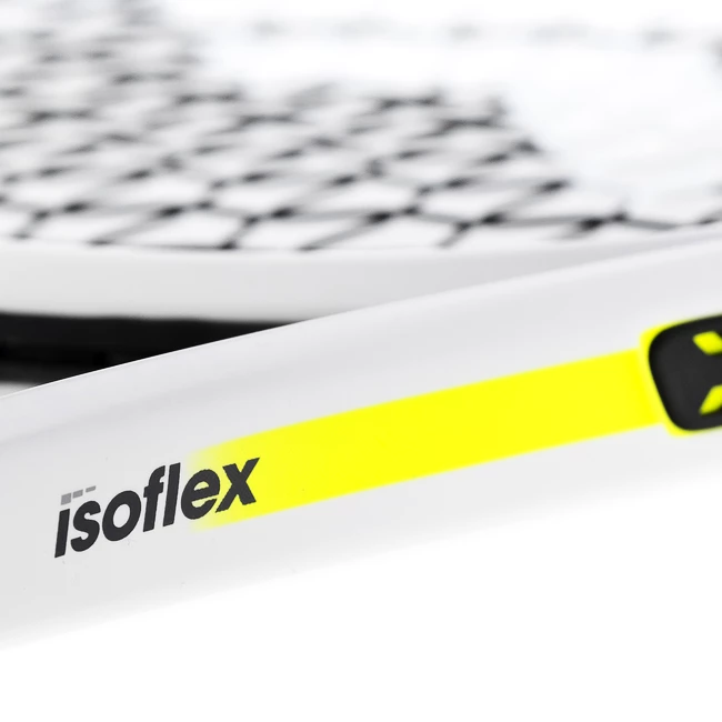 Les œillets pour les cordes et la protection du cadre à l’extérieur ont des trous IsoFlex. Ceux-ci permettent à la corde d’avoir une plus grande amplitude de mouvement lors de la frappe de la balle. Le cordage est ainsi plus dynamique, génère plus d’énergie, d’effet et grâce à cela la balle reste plus longtemps sur le cordage pour plus de contrôle.