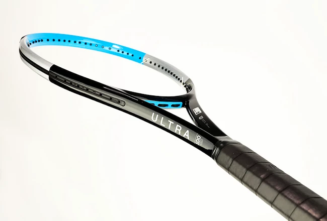 La troisième génération de raquettes Wilson Ultra lance le matériau Countervail et est livrée avec une construction traditionnelle entièrement en graphite. Cependant, le concept de cadre est complètement nouveau. Finie l’emblématique « renflement » PWS à 3 et 9 heures, qui est maintenant intelligemment intégré directement dans la structure classique en forme d’œuf de la tête de raquette, permettant au sweetspot d’être légèrement élargi.