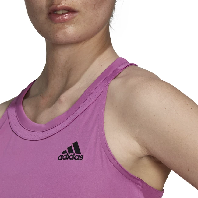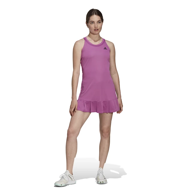 Robe pour femme La robe adidas Club Dress violette avec short intérieur en polyester 100% recyclé sera ravie par sa légèreté et sa grâce. La robe adidas Club est prête pour le match ! Cette robe est livrée dans un ensemble avec un short intérieur séparé. La robe possède un dos nageur modifié, un joli ourlet en maille plissée, évacue la transpiration et arbore un logo adidas appliqué à chaud sur le côté gauche de la poitrine.