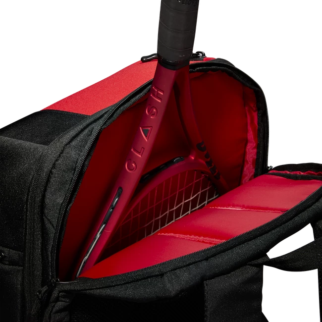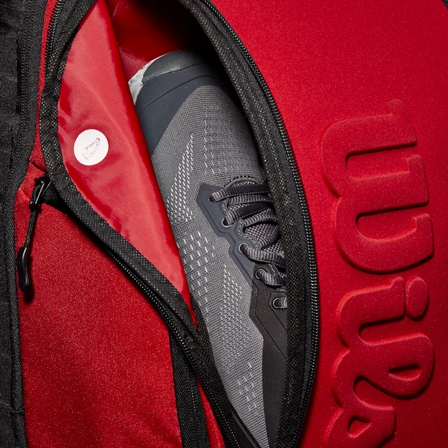 En plus de 2 raquettes de tennis, le Wilson Super Tour Backpack Clash v2.0 rouge peut accueillir d’autres équipements dont vous avez besoin pour un entraînement de tennis ou un match, comme des vêtements et des chaussures, ainsi qu’une poche intérieure spéciale pour une tablette ou un ordinateur portable et un poche pour petits objets. En plus de protéger votre équipement grâce à sa matière solide, le sac à dos est également équipé d’un compartiment de protection thermique, ainsi votre équipement sera protégé des températures élevées.