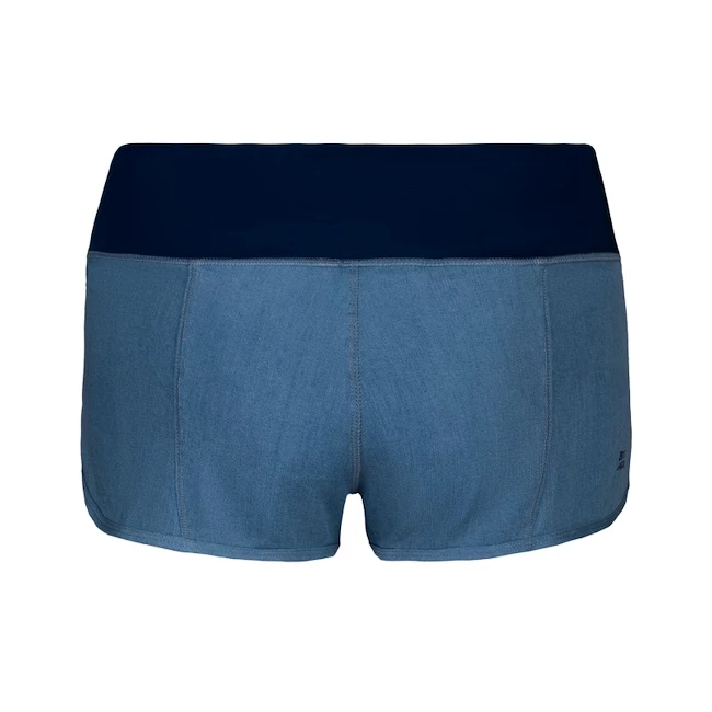Short 2 en 1 BIDI BADU Hulda Jeans Tech bleu foncé avec short de compression en matériau MAGIC Dry à séchage rapide doté de la technologie MAGIC Move pour une liberté de mouvement parfaite. Style unique de denim en Tencel naturel. Coupe très courte et ajustée pour un look moderne. Taille élastique extra large pour un ajustement confortable. Couture décorative au dos. Petit logo BIDI BADU.