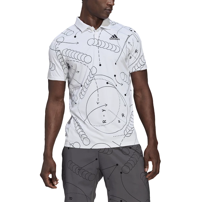 Le t-shirt adidas Club Graphic Polo White en 100 % polyester recyclé et doté de la technologie Aeroready vous gardera au sec en toutes circonstances. Cette élégante chemise à col ornée de motifs inspirés du tennis sur l’ensemble de sa surface convient à l’entraînement et aux tenues décontractées, par exemple en ville. Le coin au niveau de l’aisselle favorise la liberté de mouvement. Le logo adidas Badge of Sport se trouve sur le côté gauche de sa poitrine.