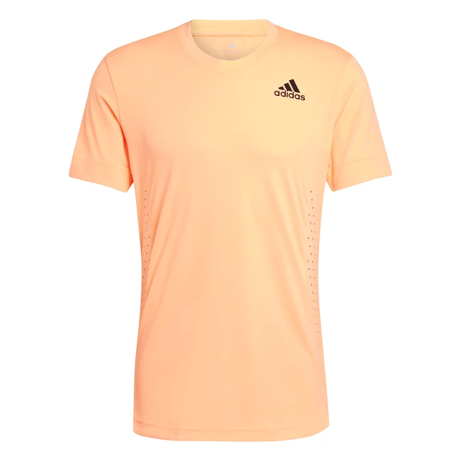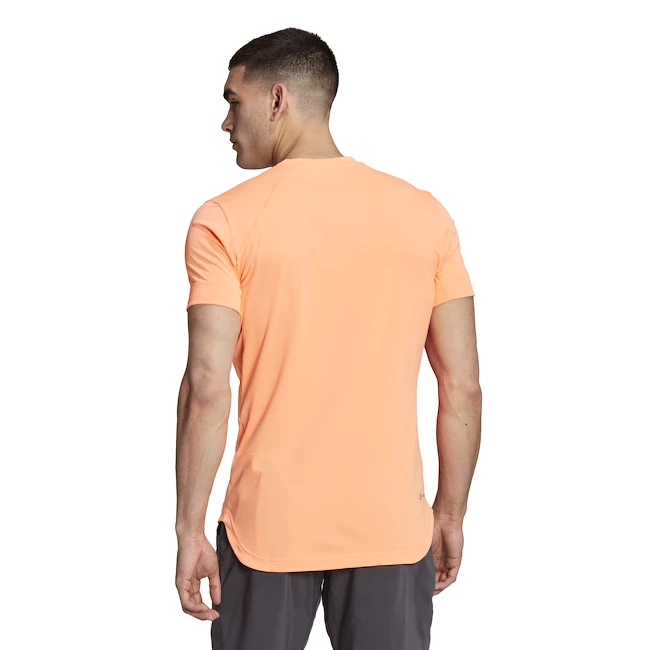 Le t-shirt adidas New York Freelift Tee Orange pour homme évacue efficacement la transpiration grâce à la technologie Aeroready et est confortable dans toutes les positions de tennis. Fait partie d’une collection exaltante exposée lors du plus grand tournoi de tennis en Amérique du Nord. Ce t-shirt adidas favorise le jeu au-dessus de la tête grâce au design FreeLift, qui vous permet de laisser de l’espace sur les épaules pour les coups et aide à empêcher l’ourlet arrière de se soulever lorsque vous frappez. Les inserts en mesh et la technologie AEROREADY qui absorbe l’humidité vous permettent de relever tous les défis en tout confort.